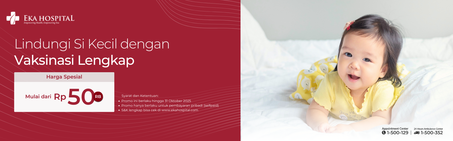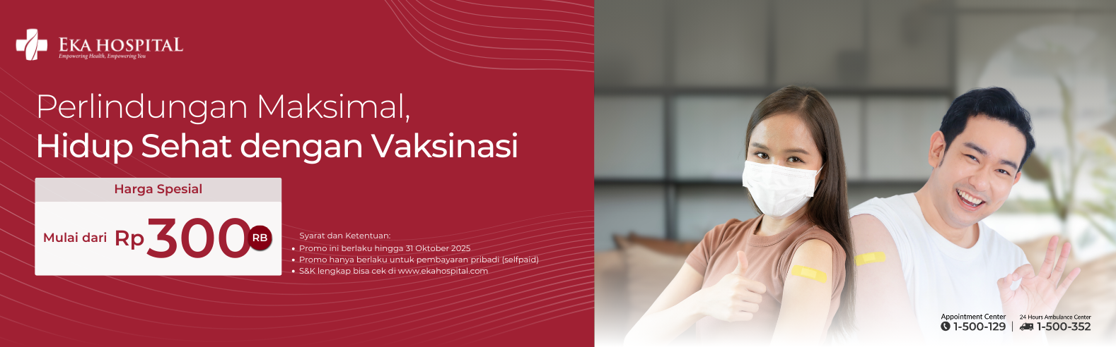 Lindungi diri dan keluarga dengan Promo Vaksin Dewasa Eka Hospital khusus Oktober 2025. Mulai dari Rp300 ribu, Anda bisa memilih beragam vaksin sesuai kebutuhan: Influenza, Pneumonia, Dengue, Tifoid, MMR, Varicella, TDAP/TD, Hepatitis A dan B, Meningitis, Japanese Encephalitis, hingga Herpes Zoster.
